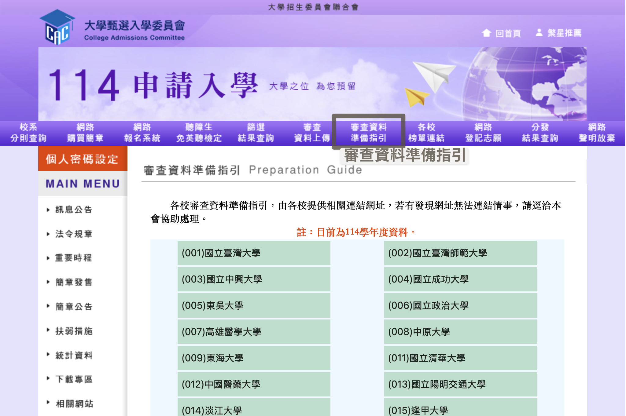 有些學校會以「校」為單位統整所有科系的審查資料準備指引,如下圖的成大學習歷程檔案準備指引,有些則是以「科系」為單位公告在系網上,無論哪種透過這組關鍵字都能找到!